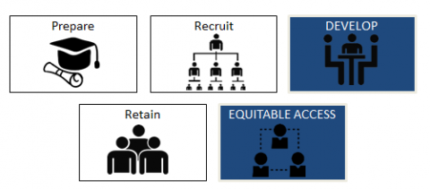 This graphic represents the five common talent management challenges. LEAs may address one or more of the five common talent management challenges of preparing, recruiting, developing, retaining and providing equitable access to the most effective educators using career ladder pathways.