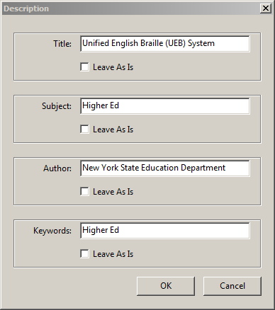 - Remove the check from Leave As Is. Title is for the Title of the file.