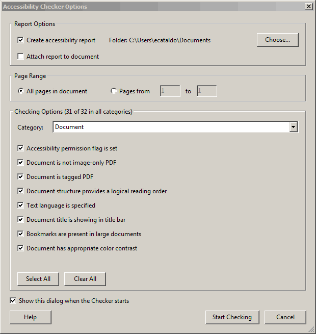 - If you clicked Save & Close, then the Accessibility Checker Options box will open. Click the Start Checking button.