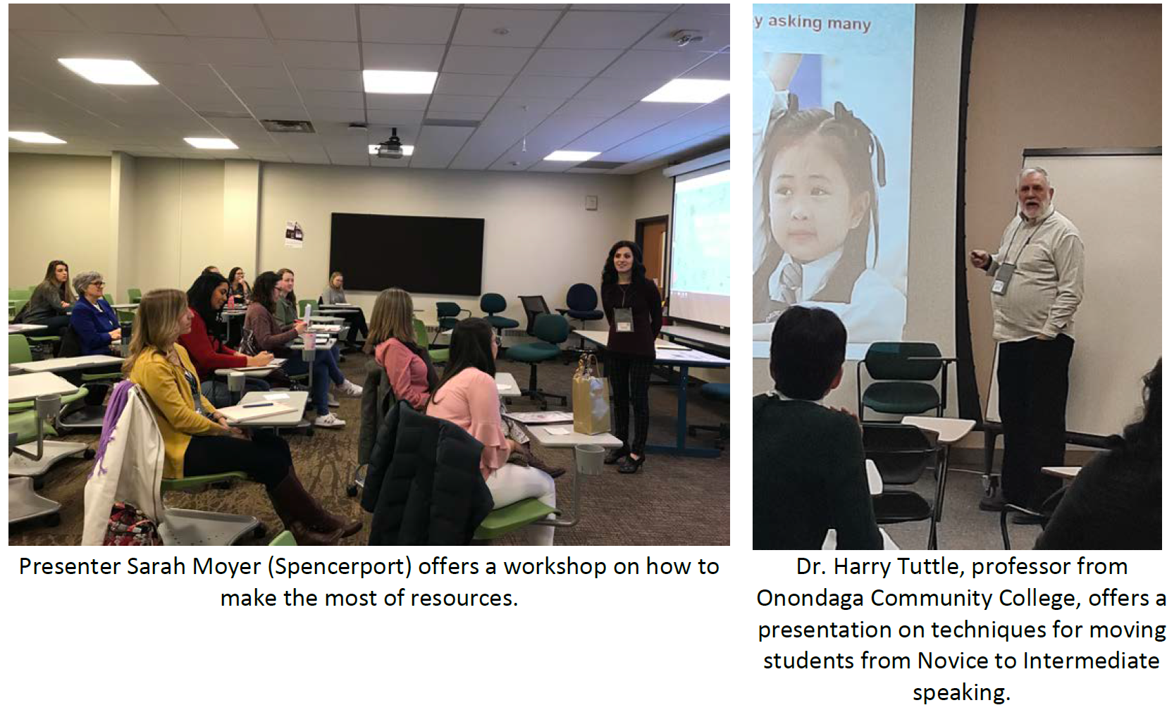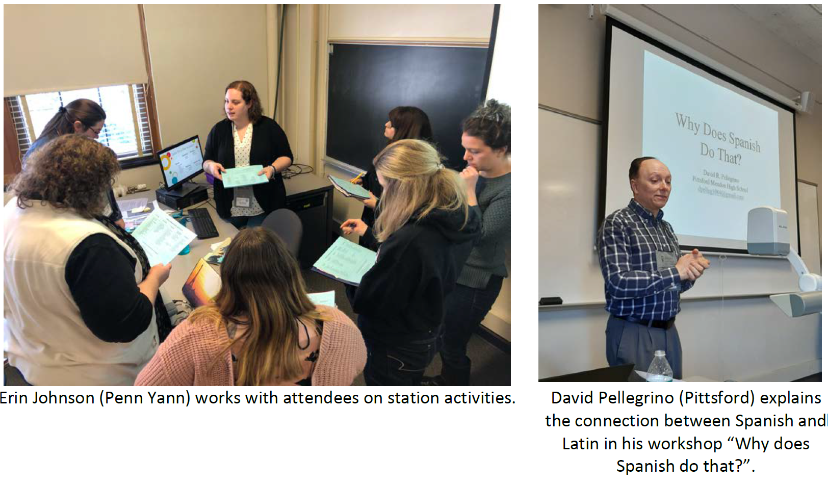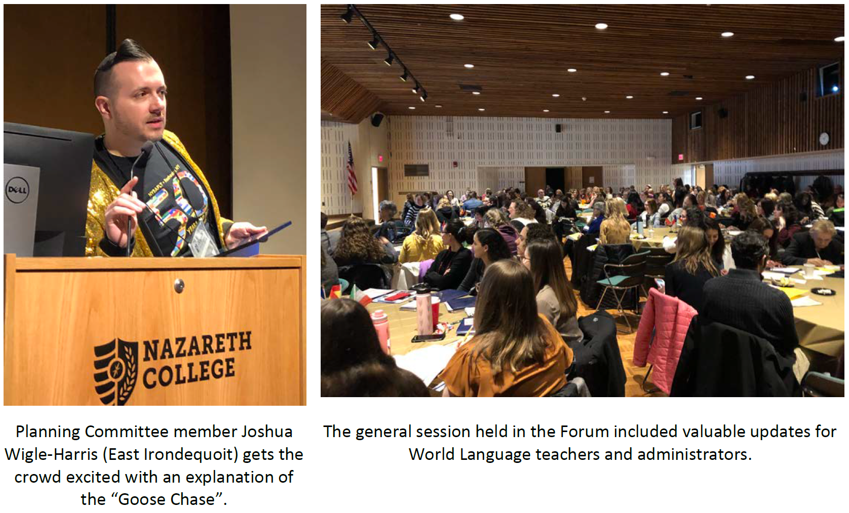 The New York State Association of Foreign Language Teachers (NYSAFLT) hosted its 50th annual Rochester Regional Conference on Saturday, March 7, 2020 at Nazareth College in Rochester, NY. This year’s theme was “1970-2020: Entering the Golden Age of World Languages – Celebrating 50 Years and Beyond in the Rochester Region”. More than 225 world language teachers and administrators from the greater Rochester area attended this day of professional learning. The event began with a general session by co-chairs Melanie Thomas (Spencerport) and Rose DiGennaro (East Irondequoit), a NYSAFLT update by President Leslie Kudlack, and a presentation on the World Languages Standards Revision process by Candace Black, Associate from the Office of Bilingual Education and World Languages at the New York State Education Department. The general session concluded with the presentation of the NYSAFLT Friend of Foreign Language Award given to Nazareth College’s Casa Italiana, headed by Dr. Maria Rosaria Vitti-Alexander. The keynote address was delivered by Dr. Jennifer Eddy of Queens College, CUNY. Following the keynote, 27 workshops were offered on a variety of high-leverage teaching practices including Authentic Resources, Thematic-Based Approaches, the 3 Modes of Communication, 90% Target Language Use, and cultural updates in French, Spanish and German.
