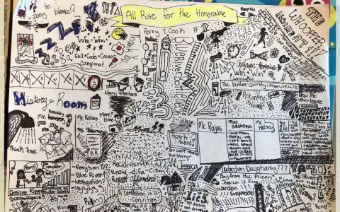 Howard believes that activities, even as small as allowing her students to choose their own fake names or using duct tape to create light saber pencils, contribute toward “setting the stage for learning.” She uses memes as a supplemental form of grading to personalize digital feedback, uses apps to craft secret messages, and creates matching games with flashcards to learn vocabulary. Howard believes that it is the small details that make the experience: “If you’re theatrical, it helps. It’s so much different than giving students a packet. Any little thing you add makes such a difference.” For Escape Rooms, Howard uses yellow caution tape, badges, and even an outline of a body on the floor. Escape Room kits for the classroom can be purchased online, but Howard usually designs her own kits. Howard even adds an engaging component to taking notes. Sketchnoting is a spin on traditional note-taking. Howard defines it as purposeful doodling on paper while listening to something. It helps students make connections to text, as well as visualize and summarize the information they are hearing. The strategies and activities Howard use are more than just a way to engage students; they are a way to encourage a life-long passion for learning.