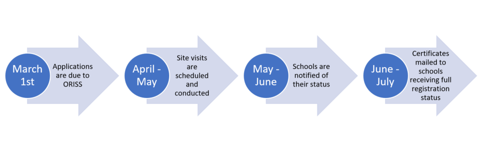 - For timely approval of the registration application, the school should follow-up with ORISS on any requests for more information.